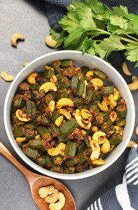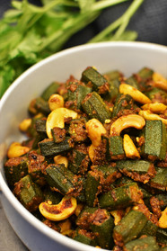 Stand out from the crowd by making this distinctive Kaju Bhindi subji. Make it using frozen bhindi when fresh ones are difficult to locate.