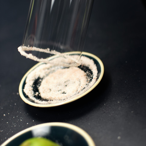 Spread the dry ingredient (Himalayan Pink Salt in this case) on a flat shallow plate that is wider than the glass rim.
